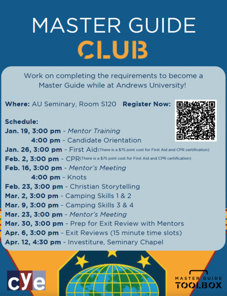 Register for AYMT Adventurer Basic Staff, Master Guide Leadership Skills or AYMT Staff Leadership at cye.org/toolbox. In addition to the Master Guide Toolbox weekend, Feb. 7 and 8, Sunday classes are offered as outlined...