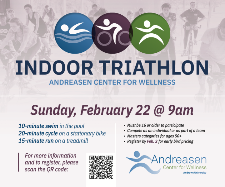 Date: Feb. 6, 13 & 27, 2026 (Zoom attendance will be available on Feb. 6 and Feb. 27 for those 60+ miles away.) Time: 8:30 a.m.–5 p.m. Location: Andrews University Cost: $350... read moreAndreasen Indoor Triathlon