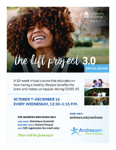 Wednesdays from 12:30–1:15 p.m. until December 16th Zoom: https://andrews.zoom.us/j/119312212 Participants will be eligible for giveaways and an opportunity to earn back the $20 registration fee after... read more